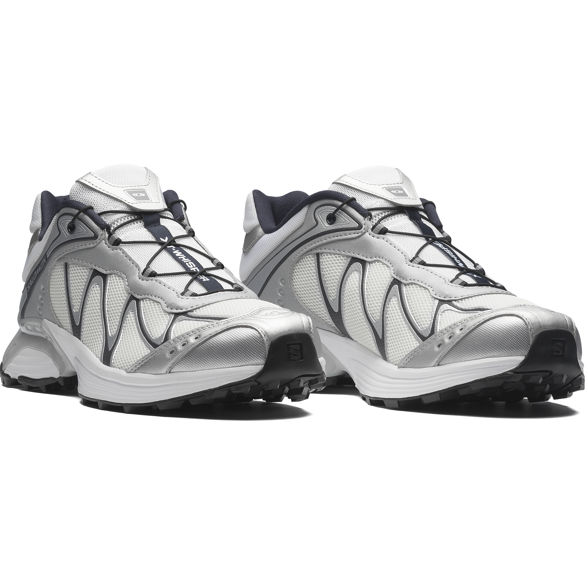 Salomon の DNA と XT のデザイン系譜を受け継ぐ XT-Whisper は、独特の質感や、レイヤー構造の高級感のある仕上げを特徴としています。コントラストのあるディテールが際立ち、リッチな素材を用いたアッパーがモダンな印象を与えます。また、独自の波状の SensiFit™ と Quicklace™ を組み合わせることで、フィット感のある信頼できるホールド感を実現しています。